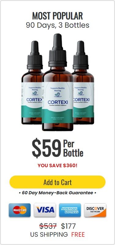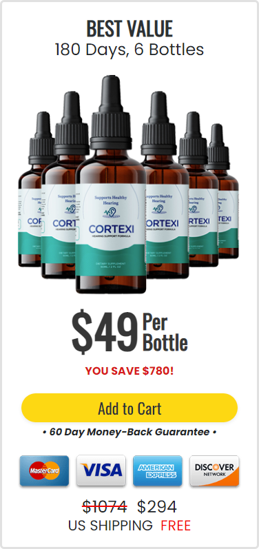 Enjoy Cortexi $49/Bottle You Save $780Each drop contains a blend of herbal extracts, plant extracts, vitamins, minerals, and other nutrients to support hearing in various ways.